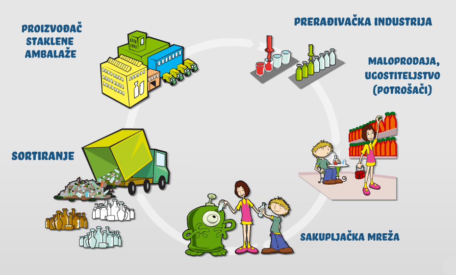 Staklo je materijal kojeg ljudi koriste već tisućama godina, a danas ga u kućanstvu najčešće nalazimo u obliku staklene ambalaže. Osim praktičnosti, ambalažno staklo ima još jednu sjajnu osobinu: ono je gotovo 100% reciklabilno, što znači da ga je moguće prerađivati nebrojeno puta, a da ne izgubi na kvaliteti. Pod pojmom recikliranje podrazumijevamo organizirano sakupljanje predmeta od istog materijala koji više ne možemo ili ne želimo koristiti, zatim njihovu ponovnu preradu u nove proizvode, i ponovnu upotrebu.